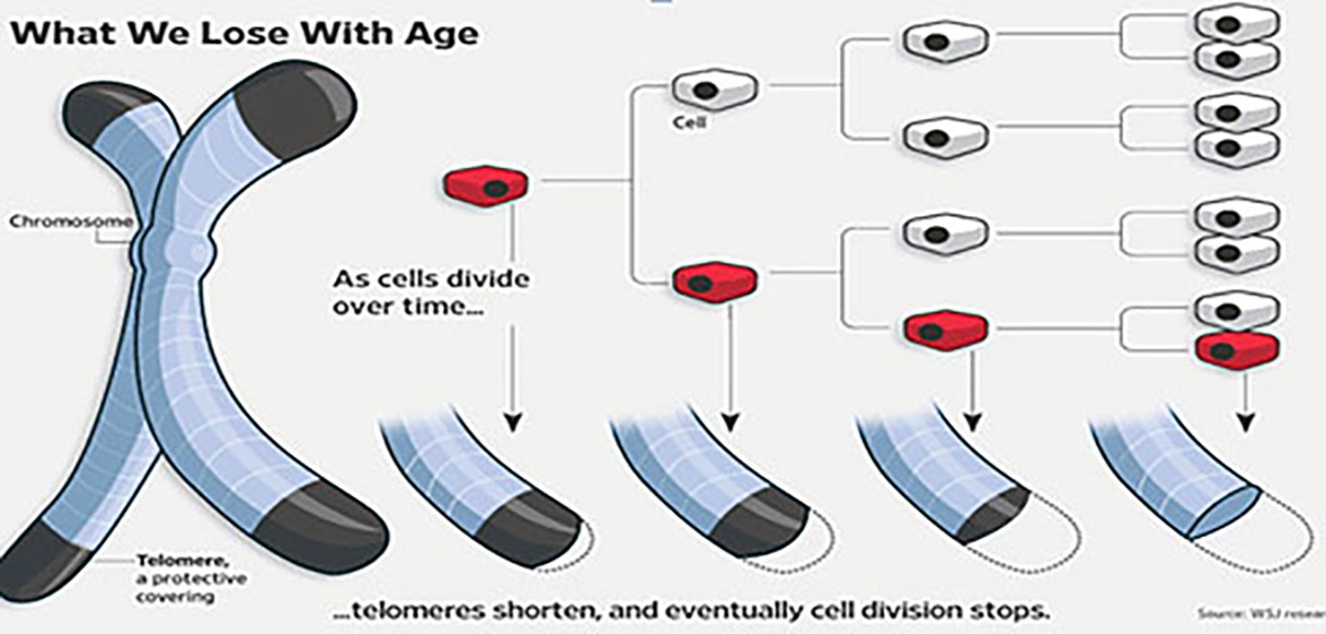If the telomeres become too short, the cells cannot replicate any longer. The telomeres shorten gradually as they age, therefore, the ability of stem cells to generate tissue is impaired. This leads to ageing and disease processes. In particular, mental performance declines significantly and a once-intact immune system function less and less efficiently. The condition of the telomere is strongly linked with cardiovascular diseases, dementia, depression, diabetes, infertility and cancer. In a large number of scientific studies in the USA, the causes and effects of the shortening of telomeres have been examined and a Nobel prize has even been given in this area of research. The length of the telomeres can be determined by analytical methods in laboratories.